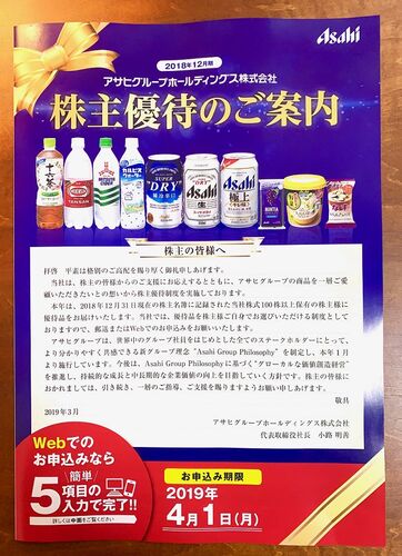 アサヒグループホールディングス(2502)の株主優待をご紹介します。 株主しか飲めない特別醸造のビールをもらうことができます☆